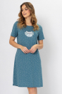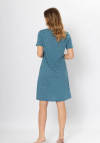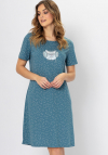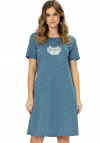 Koszula damska z krótkim rękawem, uszyta z wysokiej jakości wzorzystej bawełny. Na wysokości klatki piersiowej delikatny nadruk, długość koszuli do kolan, okrągły dekolt. skład: 100% bawełna