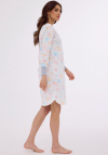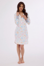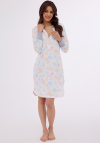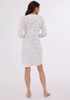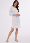 Koszula damska z długim rękawem, zakończonym ściągaczem uszyta z wzorzystej bawełny. Dekolt okrągły, rozpinany. Dół lekko zaokrąglony. Długość przed kolano. Pakowana w pudełko. Skład: 100% Bawełna