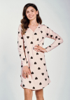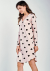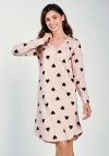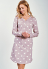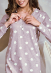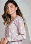 Koszula nocna z długim rękawem zakończonym ściągaczem, dekolt w serek, rozpinany. Dól koszuli lekko zaokrąglony. Skład: 100% Bawełna