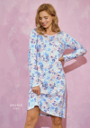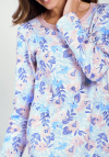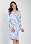 Koszula damska z długim rękawem, uszyta z ciepłej wzorzystej bawełny interlook. Dekolt okrągły. Długość koszuli do kolan. Skład: 100% Bawełna interlook