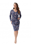 Koszula damska z długim rękawem, uszyta z wzorzystej bawełny, dekolt w serek, długość koszuli do kolan. Skład: 100% Bawełna
