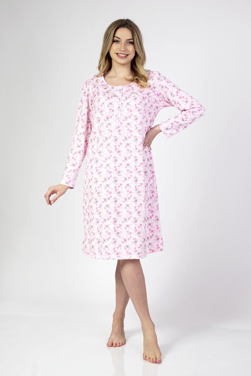 Koszula damska wykonanana z wysokiej jakość bawełny. Dekolt zapinany na guziczki. Karczek delikatnie marszczony, długi rękaw. Skład: 100% Bawełna