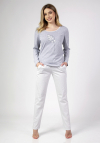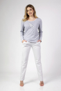 Bawełniana piżama damska, koszulka długim rękawem, dekolt półokrągły. Z przodu ozdobny nadruk, spodnie długie, wzorzyste z kieszeniami. Skład: 100% Bawełna