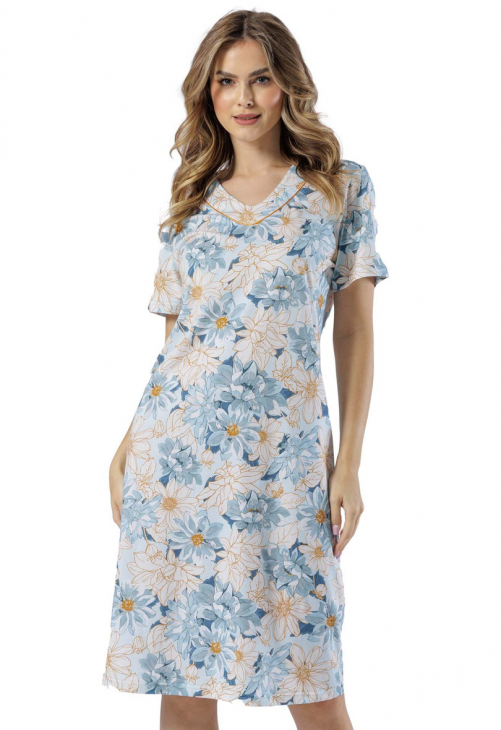 Koszula damska z krótkim rękawem. Dekolt w serek. Długość koszuli do kolan. Skład: 100% Bawełna