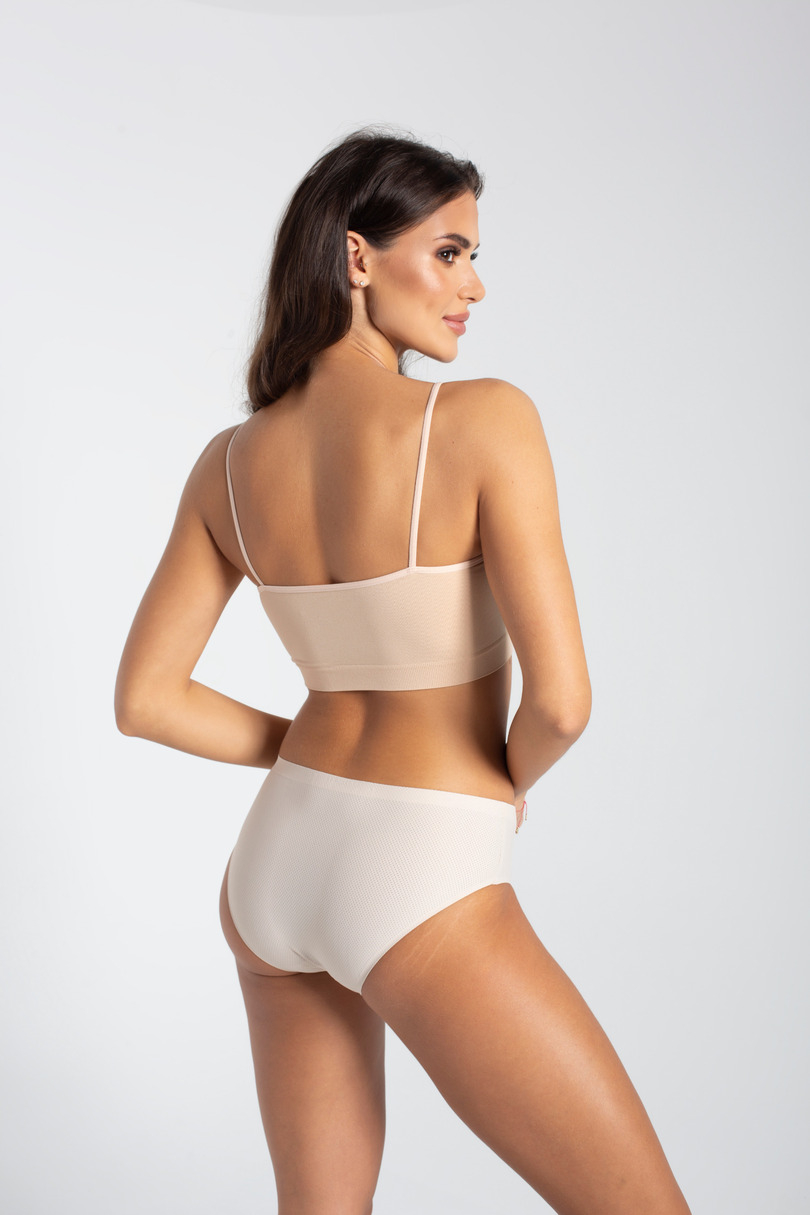 Majtki damskie ,oddychające,łączone ultradżwiękami,cięte laserowo,elastyczne,delikatne.Skład:Poliamid 85%,Elastan 13%,Bawełna 2%.
