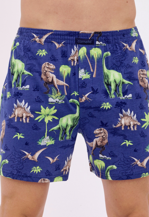 Bokserki męskie uszyte z wysokiej jakości wzorzystej bawełny. Wygodna guma w pasie obszyta bawełną. Rozporek zapinany na guzik. Pakowane w pudełko. Skład: 100% Bawełna