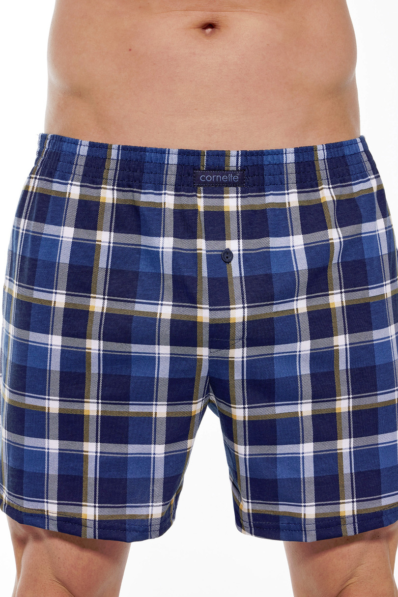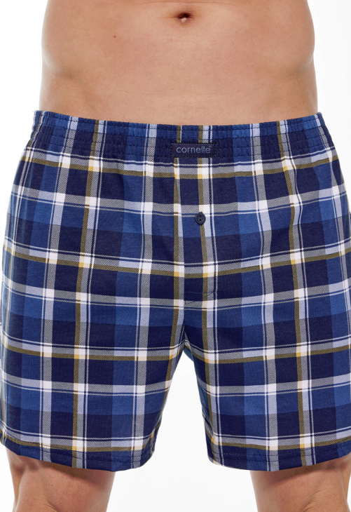 Męskie bokserki uszyte z wysokiej jakości bawełny w kratkę. Wygodna guma w pasie obszyta bawełną. Rozporek zapinany na guzik. Pakowane w pudełko. Skład: 100% bawełna