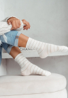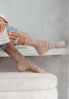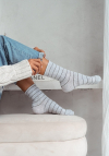 Skarpetki bawełniane damskie w delikatne lureksowe paseczki.