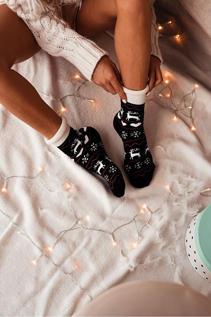 Milena Skarpetki Damskie Frotte Bezuciskowe (Renifery I Serca) 0118.003