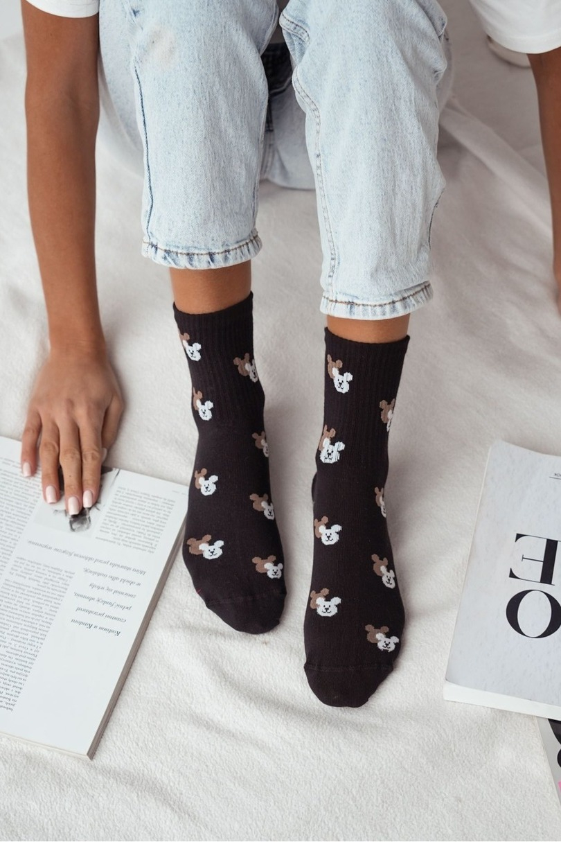 Bawełniane skarpety damskie z misiami dla osób ceniących wygodę. Doskonale sprawdzą się w codziennych stylizacjach.