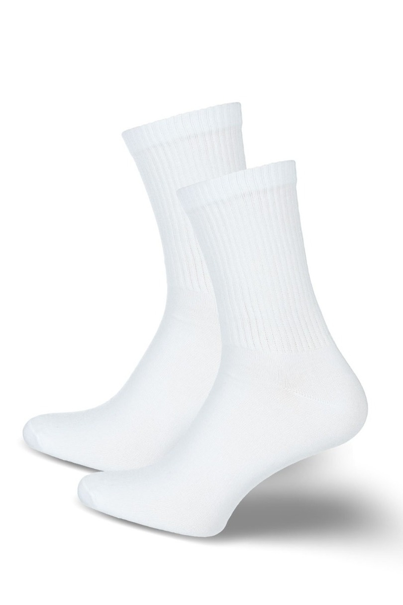 Sportowe skarpety z elastycznym ściągaczem w prążek, który nie powoduje nadmiernego nacisku. Idealne dopasowują się do stóp i zapewniają wysoki komfort noszenia.
