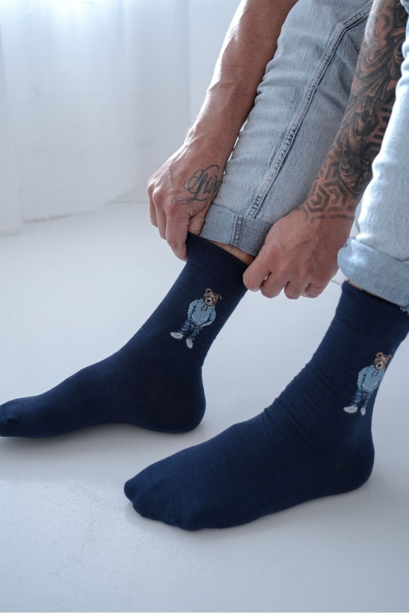 Milena Skarpetki Męskie Avangard Misiek W Niebieskiej Bluzie 0125.109