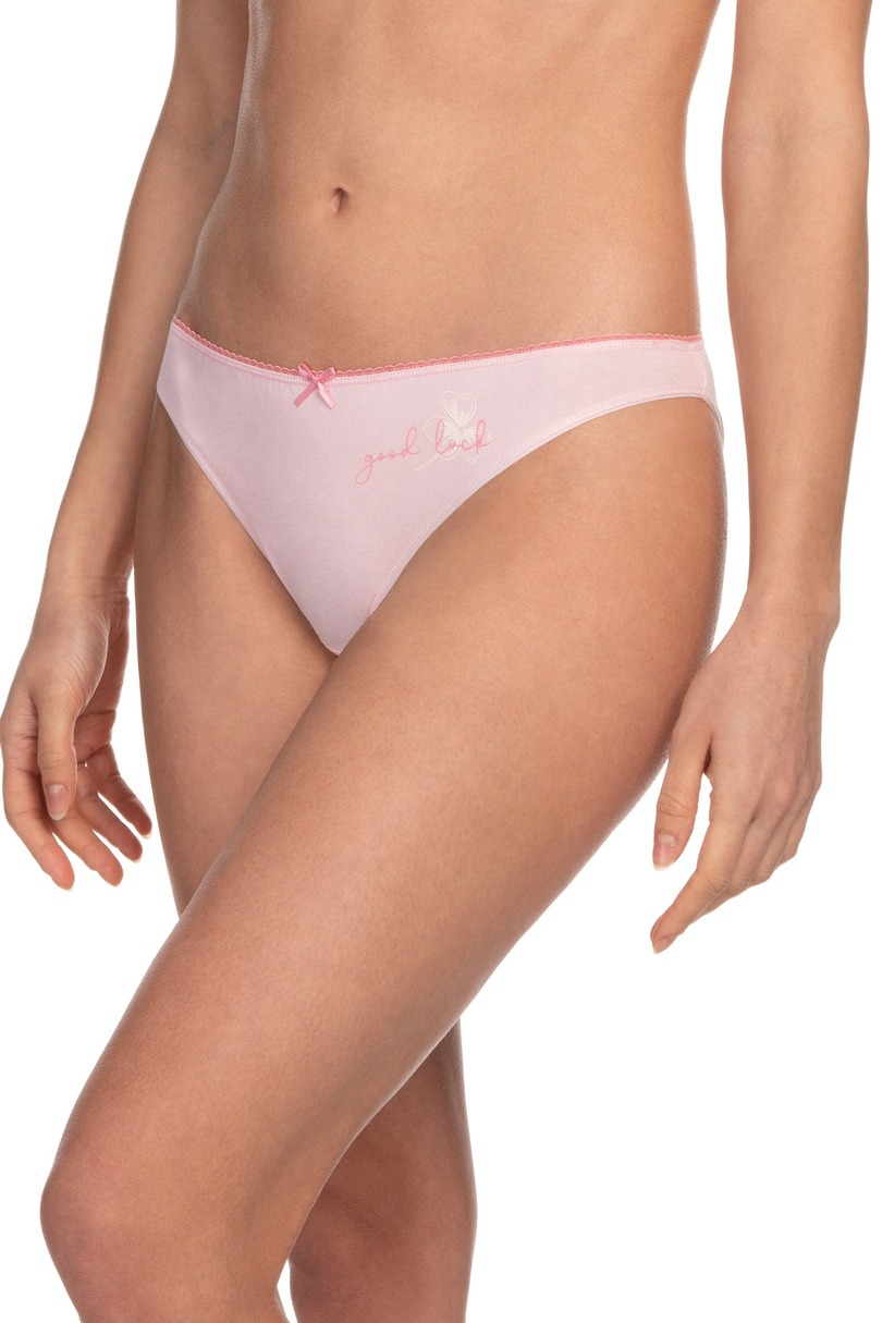 Figi bawełniane typu mini bikini, w opakowaniu 3 sztuki w prezentowanych kolorach. Skład: 95% bawełna, 5% elastan.