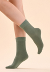 Ciepłe, gładkie skarpetki damskie są wykończone szerokim, bezuciskowym ściągaczem ozdobionym subtelnymi pionowymi paseczkami, które dodają nowoczesnego akcentu do klasycznego designu. Wykonane z dzianiny zawierającej 85% bawełny, 13% poliamidu i 7% elastanu, zapewniają wyjątkową miękkość, elastyczność i trwałość, idealnie dopasowując się do kształtu stopy.
