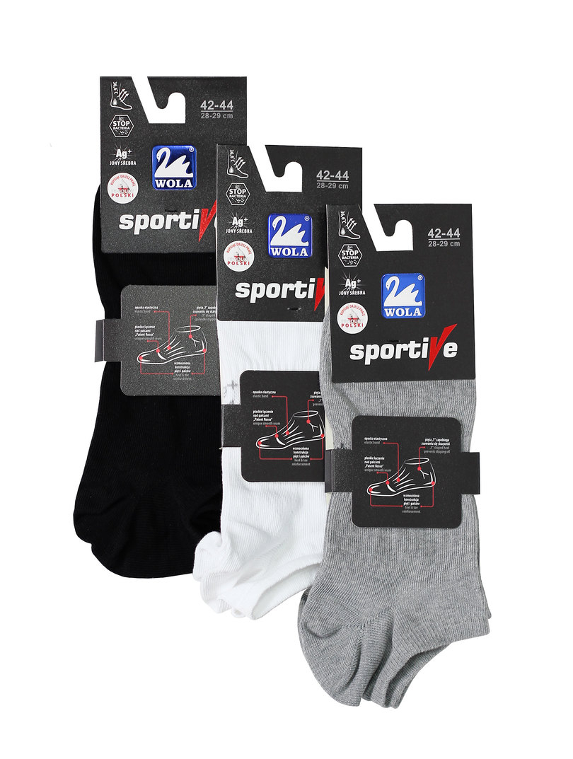 Stopki sportowe gładkie z jonami srebra. Stopki sportowe gładkie z dodatkiem elastanu. Skład procentowy: Bawełna 80%, Poliamid 3%, Polipropylen 15%, Elastan 2%