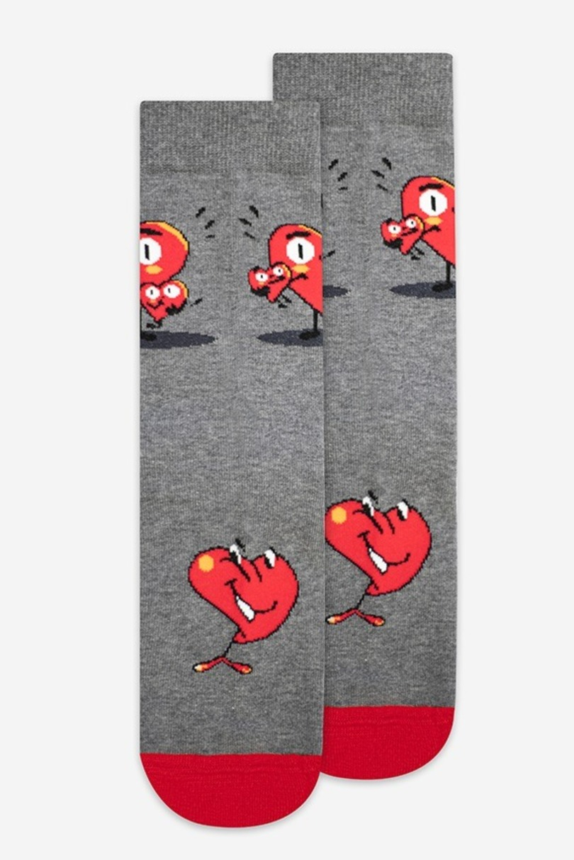Skarpety wzorowane okazjonalne, z motywami walentynkowymi, wykonane z wysokiej jakości bawełny z domieszką sztucznych włókien.