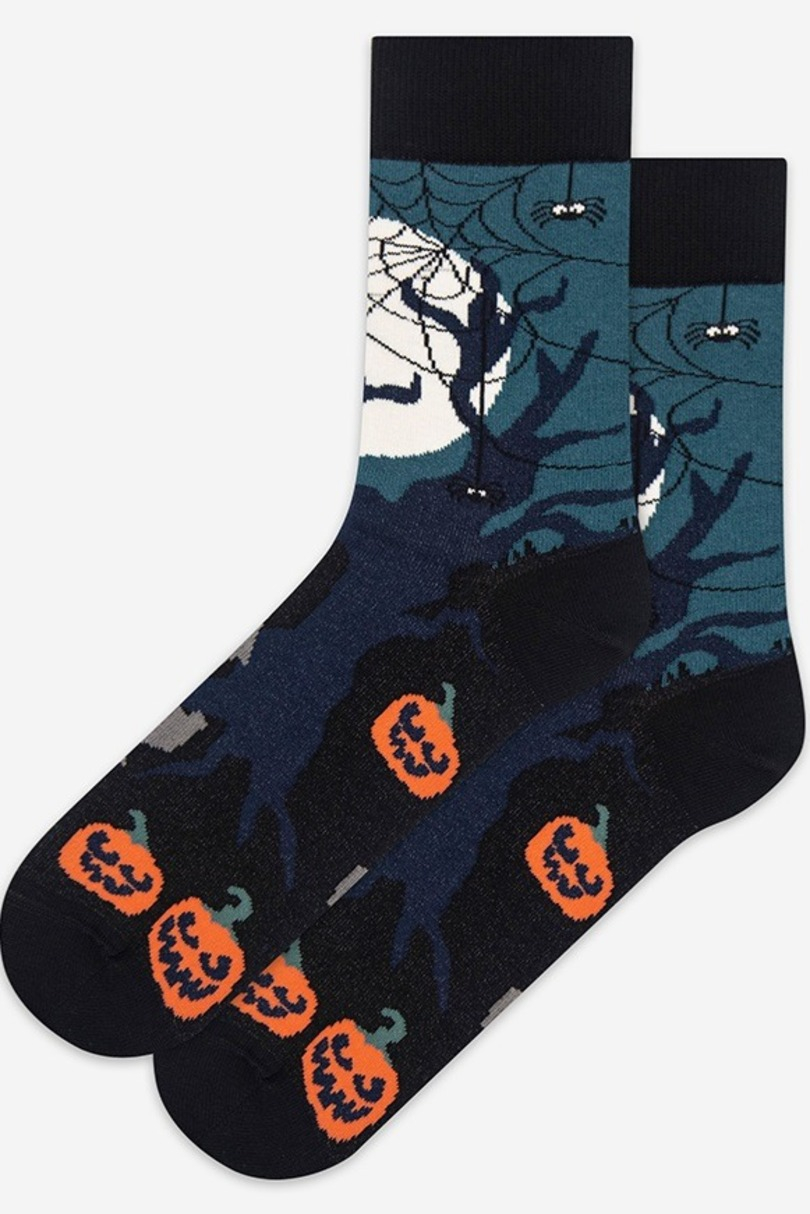Skarpety męskie wzorzyste, bawełniane, doskonałe do różnych stylizacji, jak również na Halloween. Komfort noszenia zapewnia bezszwowe łączenie.