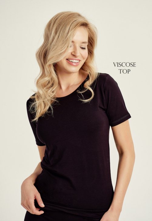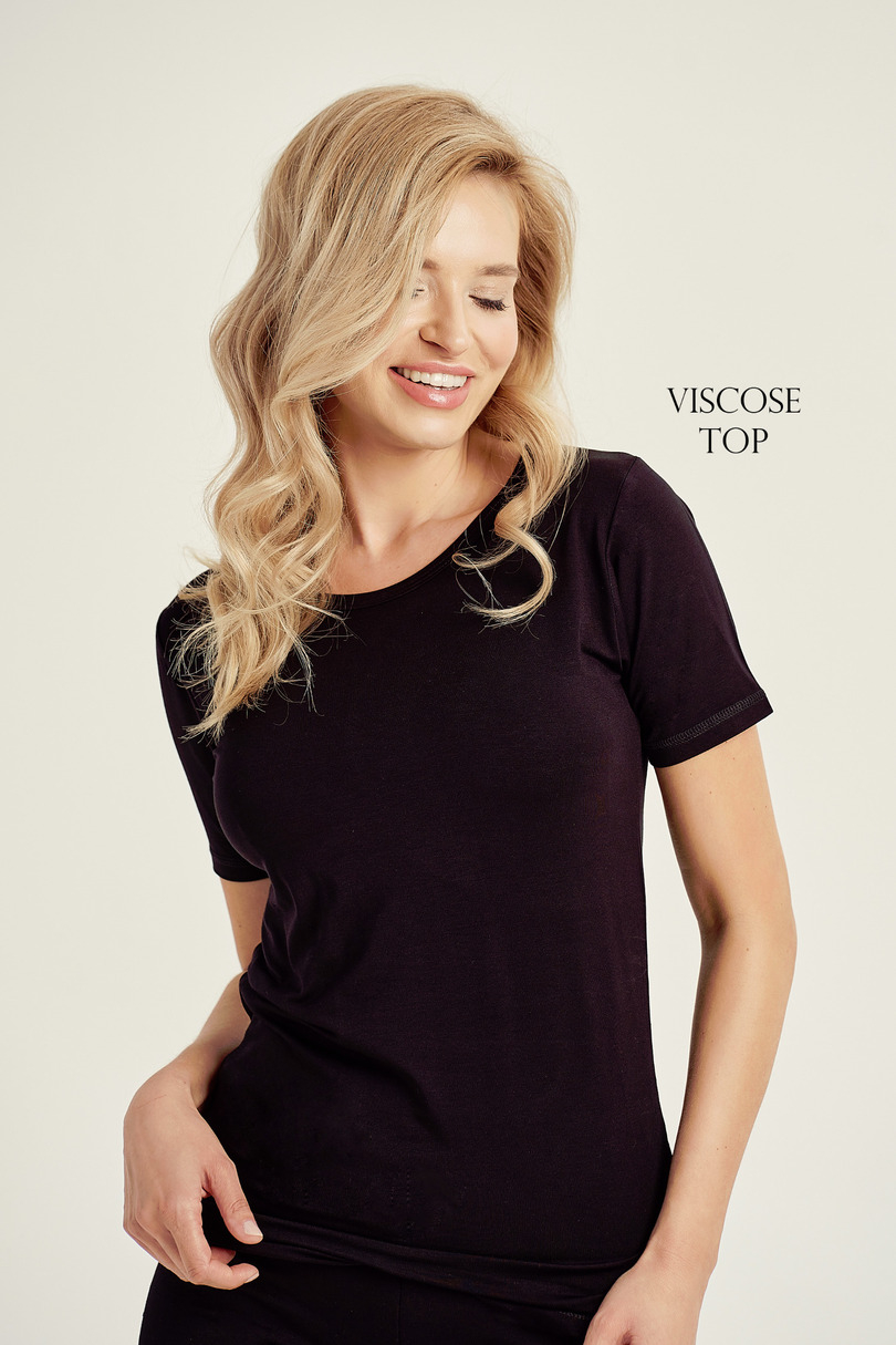 Koszulka damska z krótkim rękawem. Dekolt okrągły. skład: 93% wiskoza 7% elastan