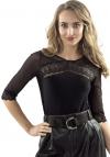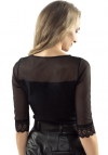 Elegancka bluzka wykonana z wiskozy w połączeniu, z tiulem i koronką. Tiulowe rękawy 3/4 wykończone koronką.