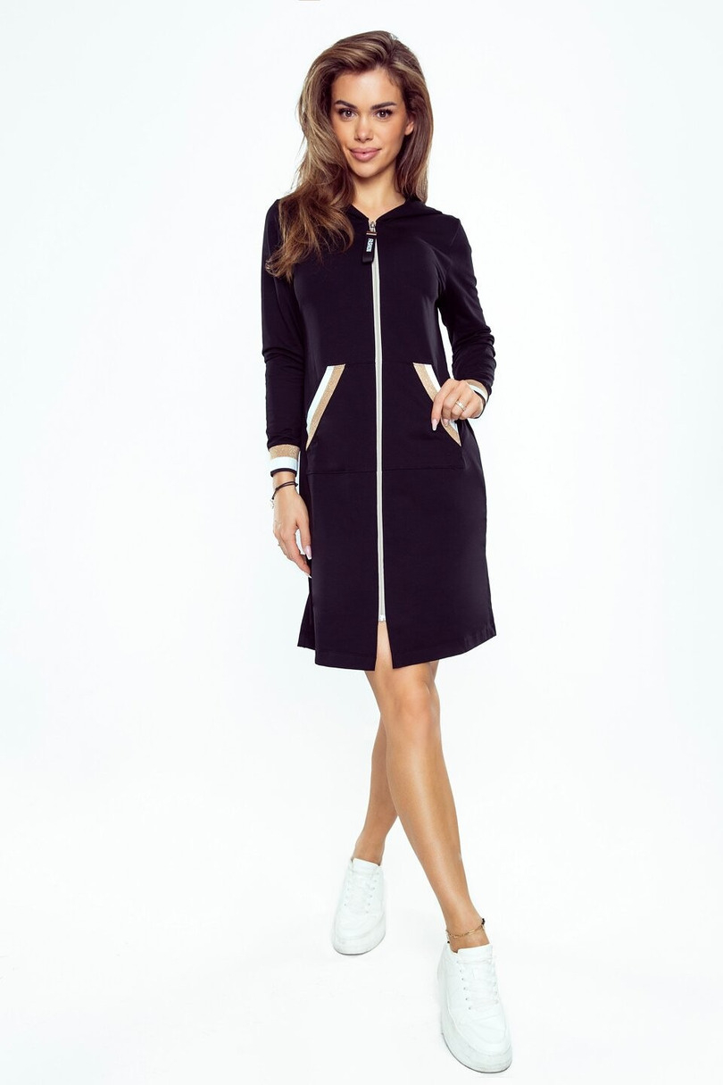 Bawełniany homewear damski szlafrok/tunika z długim rękawem i kapturem, zapinany na suwak. Po bokach kieszenie.