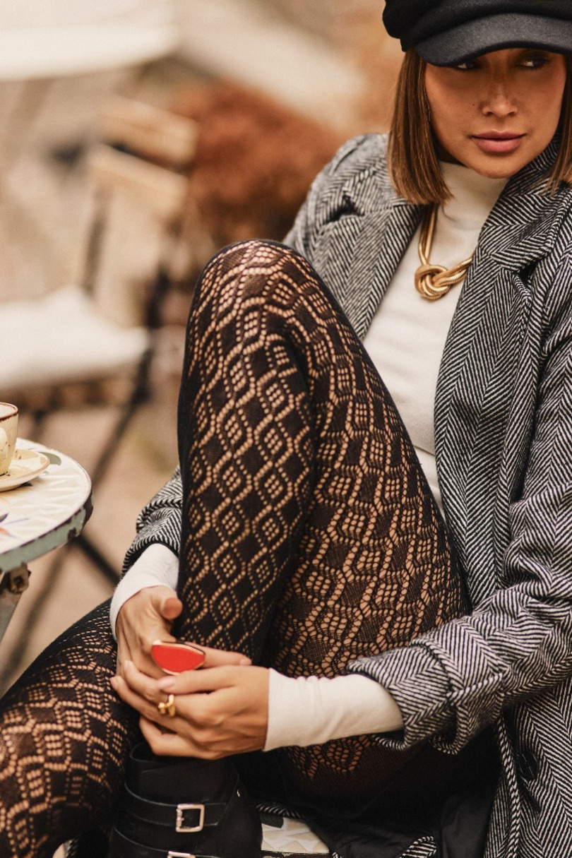 Ciepłe rajstopy bawełniane Cashmir 103 zachwycają oryginalnym zdobieniem nawiązującym do swetrowych splotów. Przyjemna w dotyku dzianina z bawełną w składzie pozwoli skórze oddychać i zapewni komfort noszenia, miękko i delikatnie otulając nogi. Fantazyjny, ażurowy wzór zdobi nogi, pięknie się na nich prezentując i dodając stylizacji subtelnej elegancji. Elastyczna dzianina bawełnianych rajstop dokładnie przylega do nóg i jest przyjemna w dotyku. Rajstopy bawełniane z powodzeniem zastąpią ciepłe rajstopy wzorzyste także podczas zimowych spacerów. Ciepłe rajstopy bawełniane Cashmir 103 od Gabrielli są dostępne w jasnym odcieniu (latte).