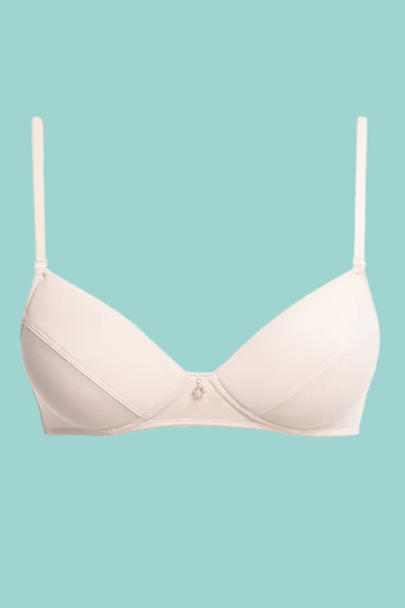 Biustonosz dla nastolatek bez fiszbin. Miseczki usztywniane miękką gąbką, w miejscu fiszbin specjalne przeszycie. Krój doskonały dla nastolatek w wieku 11-15 lat. My First Bra - pierwszy staniczek dla dziewczynki zaprojektowaliśmy z myślą o wygodzie, bezpieczeństwie i zdrowiu Młodej Kobiety. Tworząc staniczki My First Bra, w naszych myślach i sercach samopoczucie nastolatki było zawsze na pierwszym miejscu. Skład: 89% Poliamid, 11% Elastan