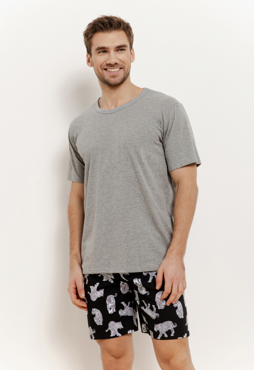 Męska piżama CLARK od marki TARO to doskonałe połączenie klasyki i nowoczesnego wzornictwa. Wykonana w 100% z wysokiej jakości bawełny, gwarantuje przewiewność, komfort i przyjemność noszenia. Gładka koszulka z krótkim rękawem oraz półokrągłym dekoltem doskonale komponuje się ze wzorzystymi spodenkami, tworząc stylowy zestaw. Elastyczna, nieuciskająca gumka w pasie zapewnia swobodę ruchów i wygodę podczas snu. Idealna na każdą noc, szczególnie na cieplejsze dni! Skład: 100% Bawełna