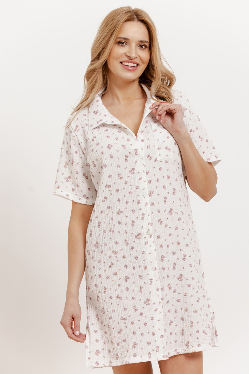 Damska koszula nocna Sindy 3421 marki Taro to połączenie elegancji i komfortu na każdą noc. Wykonana z 100% bawełny muślinowej, jest wyjątkowo lekka, przewiewna i delikatna dla skóry, dzięki czemu zapewnia wygodę nawet w najcieplejsze noce. Koszula posiada krótkie rękawy oraz zapięcie na guziki na całej długości, co ułatwia jej zakładanie i zdejmowanie. Na wysokości klatki piersiowej znajduje się praktyczna kieszonka, która dodaje koszuli uroku i funkcjonalności. To stylowa i wygodna propozycja na letnie noce i domowy relaks. Skład: 100% Bawełna Muślinowa