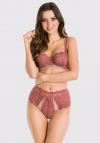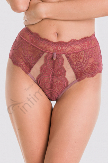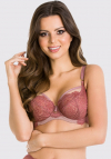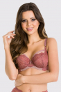 Biustonosz miękki. Miseczki z siatki pokrytej koronką, góra przezroczysta. Obwód z tiulu obszytego koronką, brak bocznej fiszbiny. Konstrukcja zbierająca i unosząca piersi, skierowana dla pań z średnim i dużym biustem.