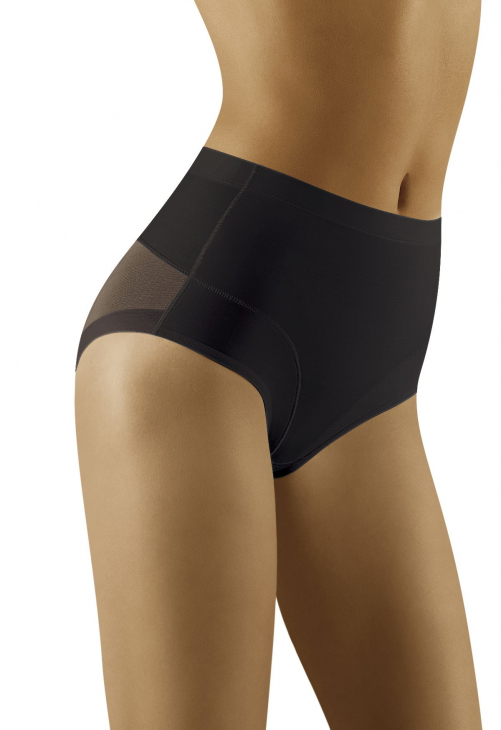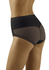 Rewelacyjne figi z wyższym stanem, które modelują strefę brzucha i bioder. Specjalna dzianina o właściwościch ściągających, wygłada ciało i wpływa na poprawę kształtu sylwetki. Tył z siateczką, która pozwala unieść pośladki. Figi są wygodne i (pomimo swej ukrytej funkcji) bardzo komfortowe w noszeniu. Skład: 58% poliamid, 42% elastan.