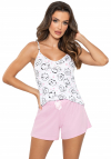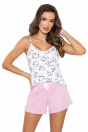 Stylowa i wygodna piżama damska wykonana z miękkiej, przewiewnej tkaniny, idealna na cieplejsze noce. Zestaw składa się z koszulki na cienkich ramiączkach z uroczym nadrukiem oraz dopasowanych krótkich spodenek. Spodenki posiadają elastyczną gumkę w pasie, zapewniającą komfort noszenia, a całość dopełnia ozdobna kokardka, dodająca subtelnego uroku. Piżama pakowana jest w praktyczny woreczek foliowy, idealna także na prezent.