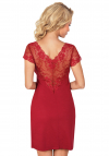Koszula nocna o eleganckim designie, wykonana z delikatnej wiskozy, zapewniająca komfort i wygodę. Dekolt typu V oraz góra wykończone subtelną koronką dodają kobiecego uroku. Gumka pod biustem zapewnia idealne dopasowanie, a luźny krój gwarantuje swobodę ruchów. Koronkowe rękawy oraz ozdobne koronkowe plecy podkreślają delikatny, romantyczny styl. Krótki rękaw i stonowana kolorystyka czynią ją idealnym wyborem na każdą noc. Koszula zaprojektowana i uszyta w Polsce, co gwarantuje wysoką jakość wykonania.