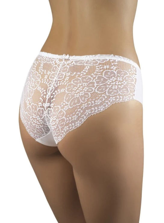 Figi damskie o klasycznym kroju, idealnie dopasowane do ciała. Przód gładki wykonany z miłej w dotyku tkaniny, delikatny koronkowy tył. Bezszwowe wykończenie brzegów.