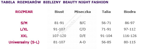 Rozmiar L/XL: Biust: 91-107cm, Miseczka C-D, Talia: 71-91cm, Biodra: 97-112cm