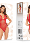 Piękne, klasyczne body w odcieniu ognistej czerwieni wykonane z koronki oraz mieniącego się, błyszczącego tiulu. Głęboki dekolt oraz grube, krzyżujące się na plecach ramiączka dodają wyrafinowania.