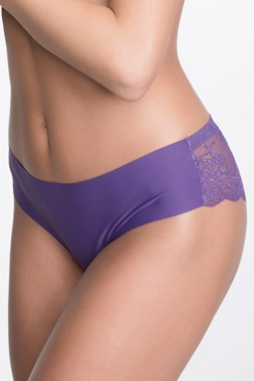 Figi damskie o obniżonej linii bioder z ultracienkim wykończeniem brzegów w technologii INVISIBLE_LINE. Bezuciskowe, nie odznaczają się pod ubraniem. Tył z koronki. Dają poczucie komfortu. Pakowane w pudełko z ozdobną kokardką.