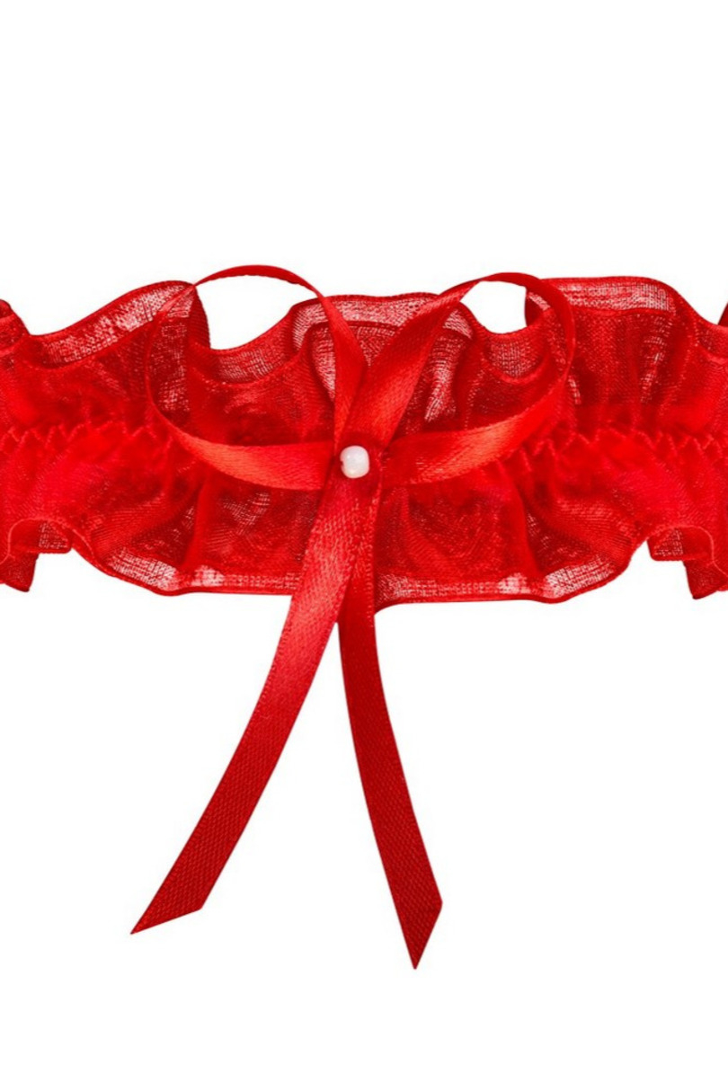 Czerwona podwiązka Monako to idealny wybór dla osób ceniących skromność i prostotę. Wykonano ją z dwóch warstw delikatnego tiulu i ozdobiono kokardką z niewielką perełką. To model idealny na studniówkę i nie tylko.
