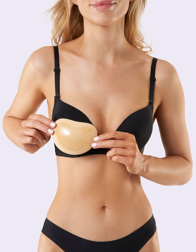 Niezwykle wygodne i sprężyste, samoprzylepne wkładki z lekkiej pianki. Skutecznie podnoszą i powiększają piersi. Przemywanie warstwy kleju po każdym użyciu pozwoli cieszyć się nimi przez dłuższy czas. Przyklejane bezpośrednio po wewnętrznej stronie ubrania. Model dostępny jest w trzech, podstawowych kolorach: białym, czarnym oraz beżowym, w rozmiarze uniwersalnym.