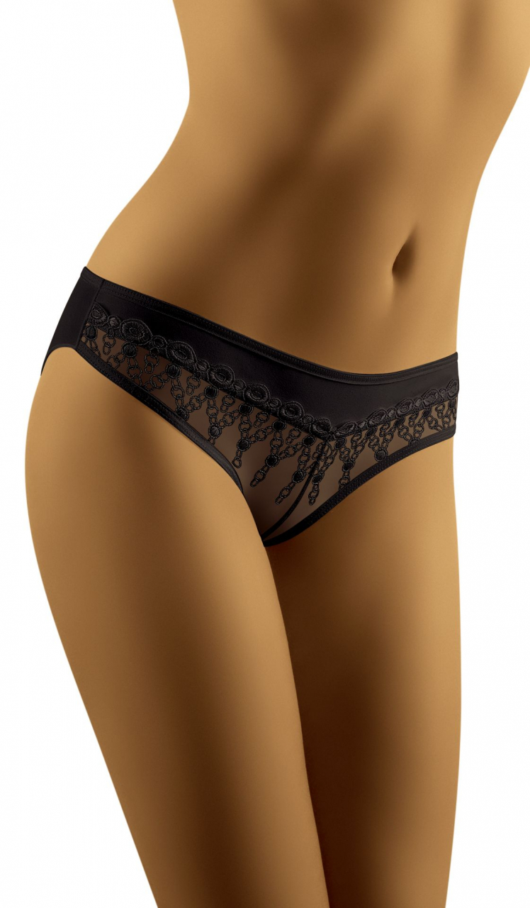 Delikatne, niezwykle komfortowe figi biodrówki. W dolnej części zwieńczone transparentnym, pięknie haftowanym tiulem. Prezentują się zmysłowo i bardzo kobieco. Skład: mikrofibra (poliamid) 83%, 17% elastan.
