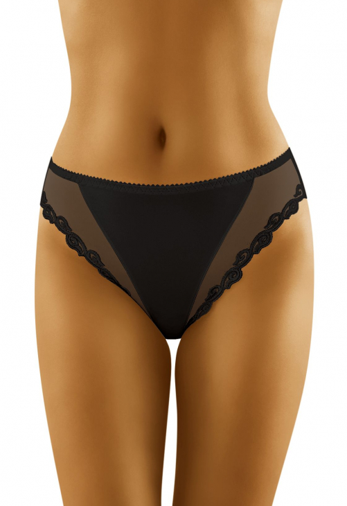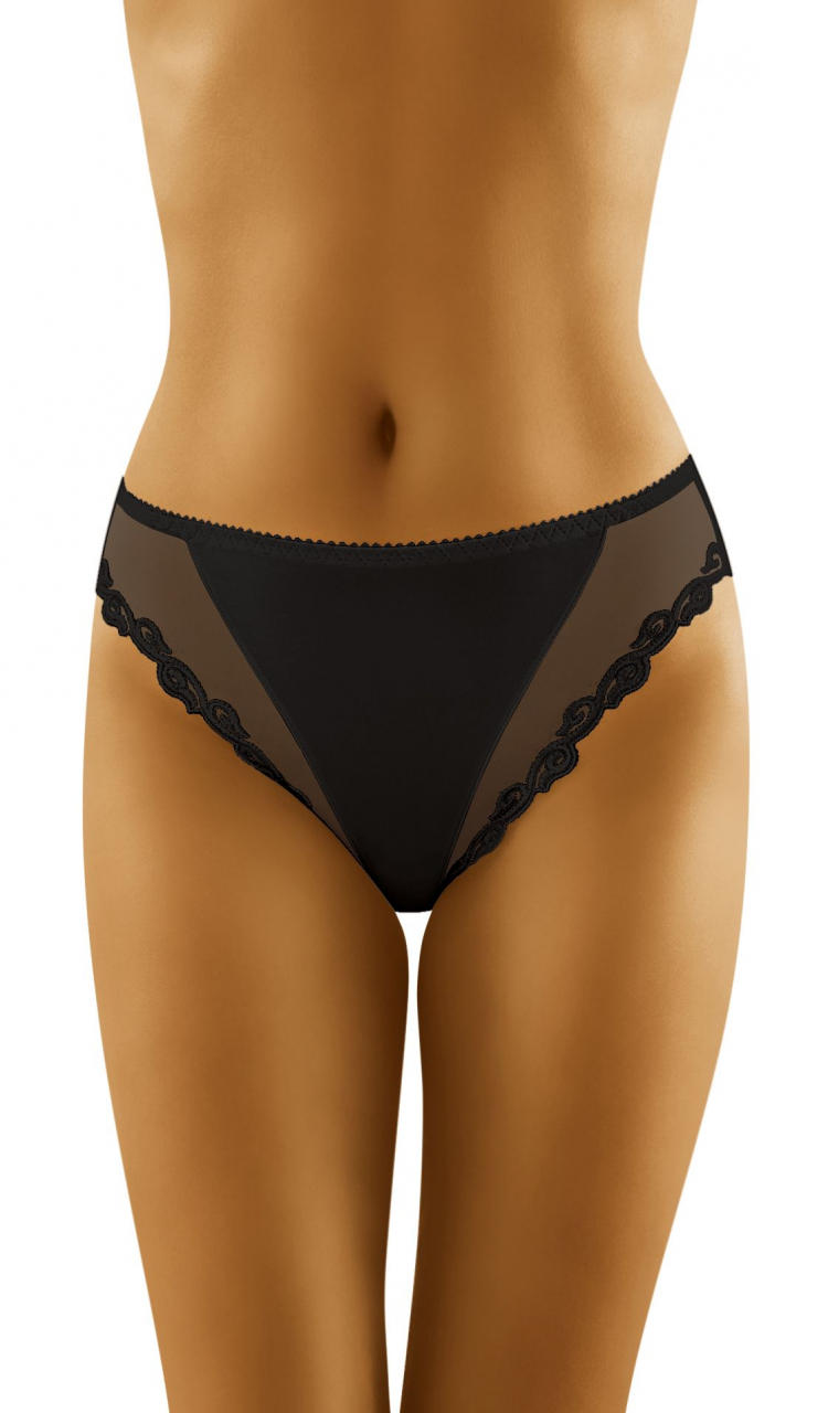 Bardzo zgrabne figi z transparentnymi bokami, które dodatkowo podkreślono subtelnym haftem wokół ud. Krój, który optycznie wydłuża nogi dając sexy efekt. Skład: 83% poliamid, 17% elastan.