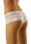 Komfortowe shorty uszyte z mocno kwiecistej koronki. Propozycja, która łączy w sobie wygodę i szczyptę romantycznego Looku. Skład: 87% poliamid, 13% elastan.