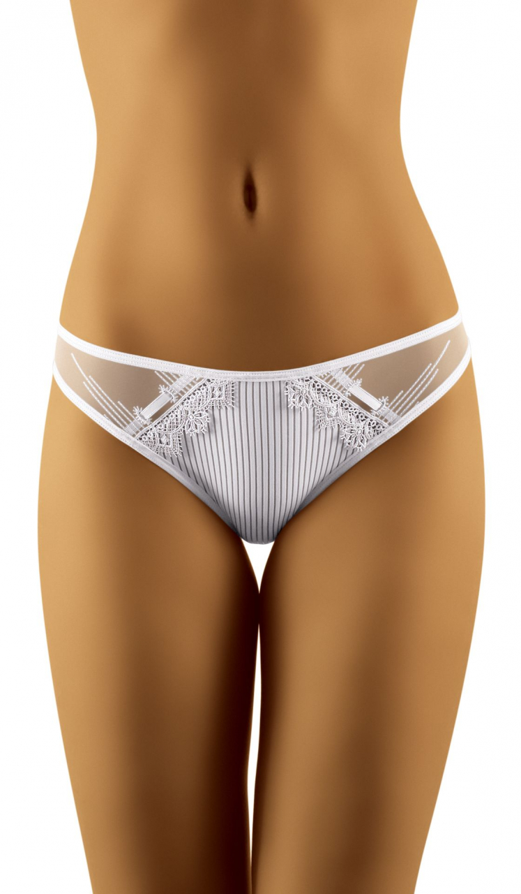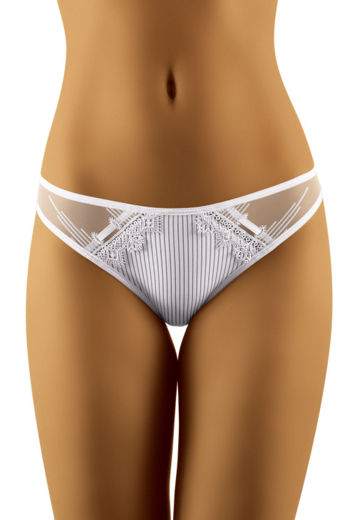 Subtelna kompozycja gładkiego tiulu, koronki i efektownej dzianiny w paski. Sisi to figi zaprojektowane z rozmachem, abyś czuła się nie tylko wygodnie, ale jednocześnie bardzo kobieco. Skład: 87% poliamid, 13% elastan.