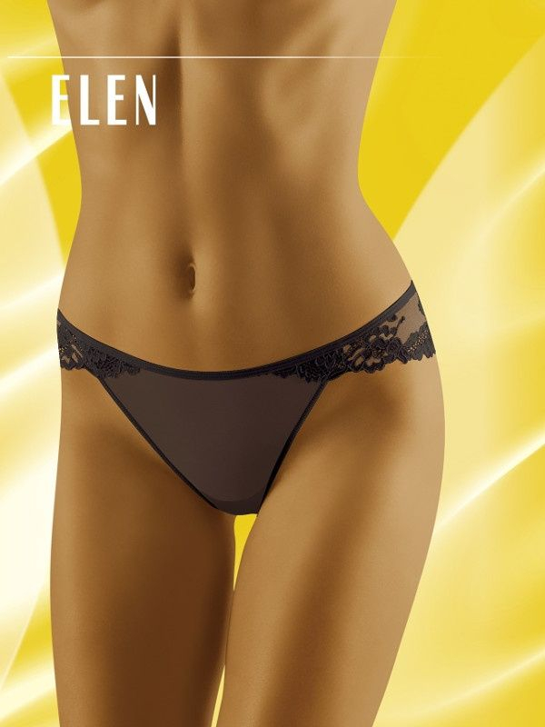 Seksowne figi, które szczególnie pięknie ozdobią biodra. Gładkie z przodu, koronkowe i zarazem kwieciste z tyłu i po bokach. Fason optycznie wydłuża nogi. Skład: 83% poliamid, 17% elastan.