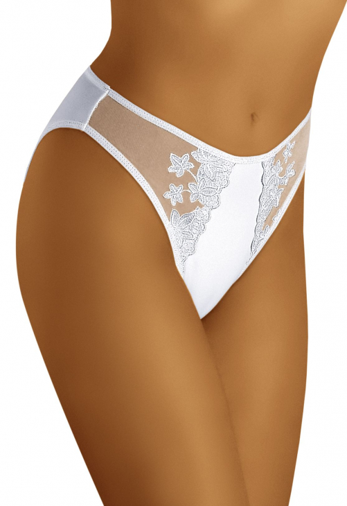 Wysoko wykrojone, bardzo zgrabne figi z koronkowymi bokami to zawsze dobry wybór. Będą wygodne a do tego optycznie wydłużą nogi i podkreślą biodra w romantycznym stylu. Skład: 83% poliamid, 17% elastan.