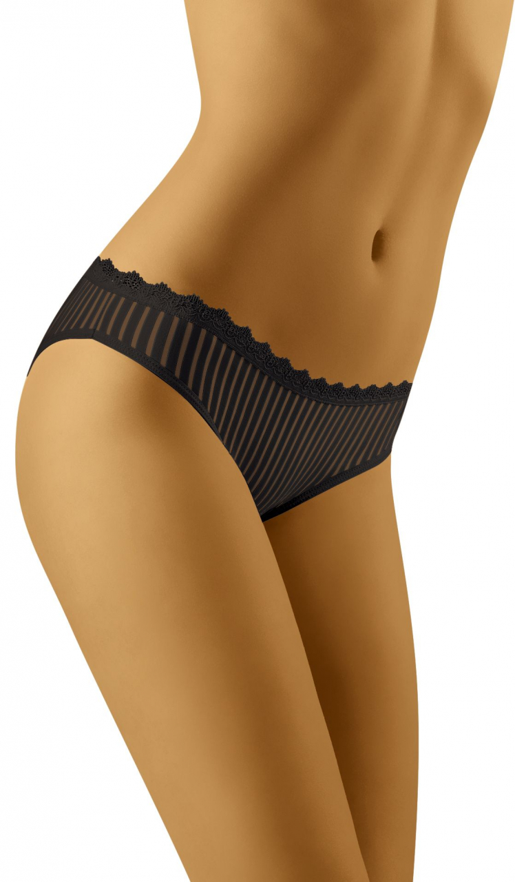 Klasyczne majteczki wykonane z wysokiej jakości tkaniny. Posiadają prążkowany wzór, który subtelnie prześwituje. Dobrze skrojone, nie krępują ruchów i nie uciskają. Skład: 83% poliamid, 17% elastan.