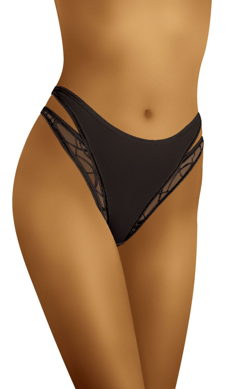 Zmysłowe figi na podwójnych, ozdobnych paskach. Gładkie z przodu i transparentne po bokach. Tworzą efekt 2 w 1. Wyglądają extra właściwie na każdych biodrach. Skład: 83% poliamid, 17% elastan.