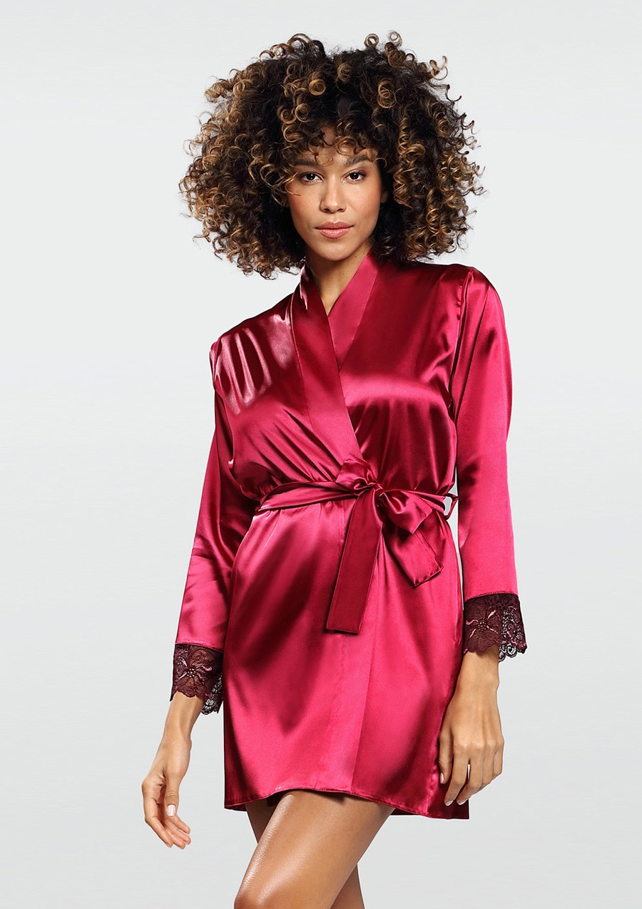 PODOMKA USZYTA Z ZWIEWNEJ SATYNY. RĘKAWY CIĘTE, WYKOŃCZONE DELIKATNĄ KORONKĄ. DO PODOMKI DOŁĄCZONY JEST PASEK. KORONKA POD KOLOR SATYNY : GRANAT, CZARNY, CZERWONY, BIAŁY ORAZ JASNY ECRU