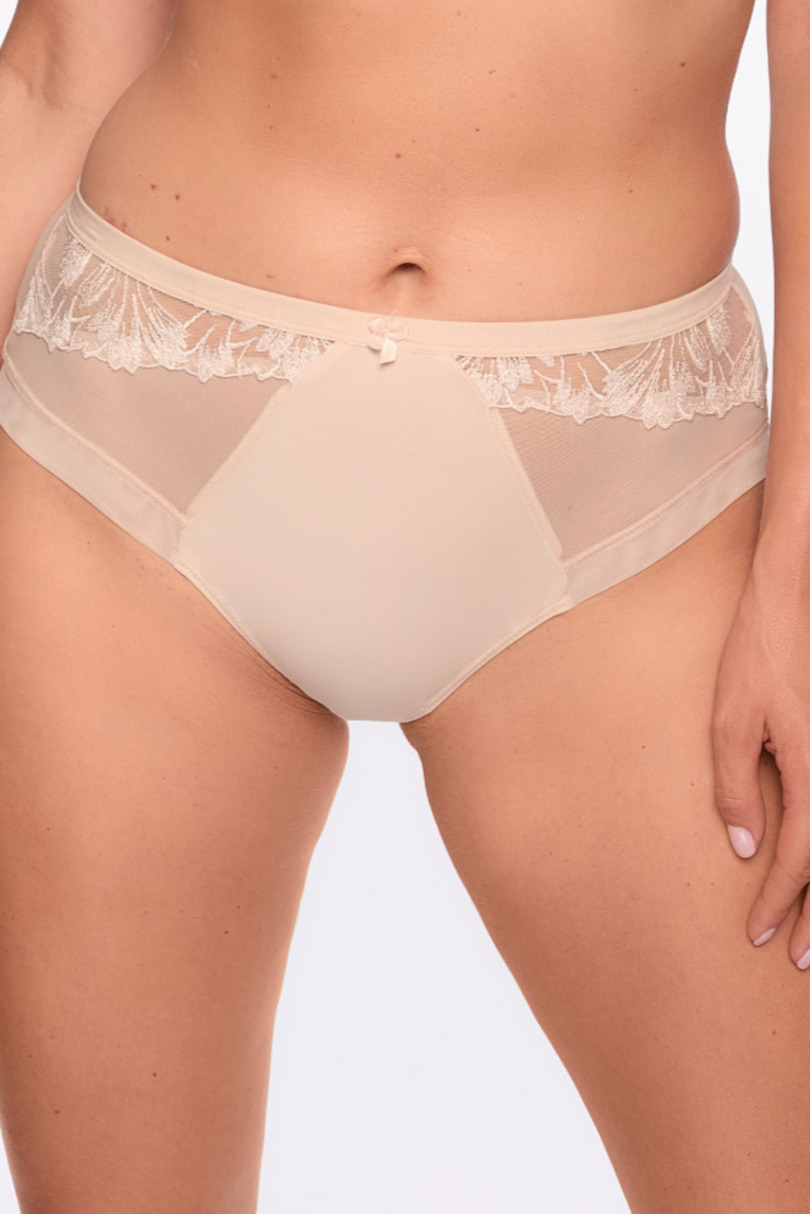Model wyróżnia się przeźroczystymi boczkami z delikatnego tiulu ozdobionego haftem, co dodaje bieliźnie zmysłowego charakteru. Gładki tył zapewnia komfort noszenia i idealne dopasowanie do sylwetki, bez odznaczania się pod ubraniem. Doskonały wybór na co dzień i na wyjątkowe okazje, gdy chcesz poczuć się pięknie i pewnie. Skład: 40% Poliester, 40% Poliamid, 10% Bawełna, 10% Elastan