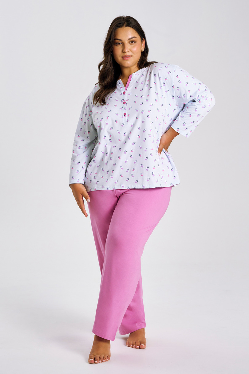 Piżama damska długa YOLANDA (model 3462) to wyjątkowe połączenie komfortu, funkcjonalności i kobiecej estetyki – stworzona z myślą o kobietach w rozmiarach 2XL–4XL, które cenią naturalne tkaniny i elegancki styl nawet w domowym zaciszu. Cechy produktu: Góra: miękka i przyjemna w dotyku wiskoza z dodatkiem elastanu, wzorzysta, z długim rękawem i praktycznym zapięciem na guziki Spodnie: długie, wykonane z wysokogatunkowej, 100% bawełny, zapewniające wygodę i ciepło Fason: luźny, dobrze układający się na sylwetce, idealny do odpoczynku i snu Rozmiary: dostępna w większych rozmiarach – 2XL, 3XL, 4XL Ta piżama to doskonała propozycja na chłodniejsze wieczory i noce – łączy praktyczność z kobiecym wdziękiem. Sprawdzi się zarówno jako codzienna bielizna nocna, jak i prezent dla bliskiej osoby.