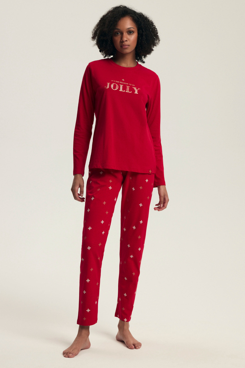 Zanurz się w świąteczny klimat z piżamą damską DOTIE 43718 AW25 od marki Henderson Ladies. Ten dwuczęściowy komplet w intensywnym czerwonym kolorze zachwyca nadrukiem w postaci subtelnych złotych śnieżynek oraz napisem "It’s the season to be JOLLY" na bluzce z długim rękawem – idealnym na zimowe wieczory. Wykonana w 100% z naturalnej bawełny piżama zapewnia wygodę, miękkość i ciepło przez całą noc. Spodnie z elastycznym pasem gwarantują idealne dopasowanie, a lekko dopasowany krój bluzki podkreśla sylwetkę, nie krępując ruchów. To doskonały wybór na prezent lub jako element własnej zimowej kolekcji nocnej – ciepło, styl i wygoda w jednym! Skład surowcowy: 100% Bawełna